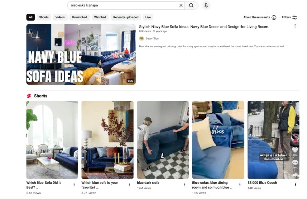Wyniki wyszukiwania dla słowa kluczowego na YouTubie.
