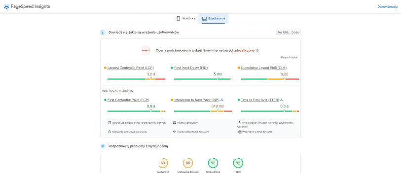 Badanie szybkości ładowania się strony na komputerach