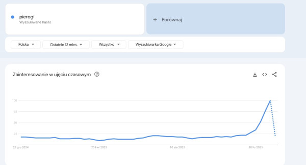 Warto też regularnie korzystać z Google Trends, aby monitorować aktualne trendy i sprawdzać, jakie zapytania mają stałe zainteresowanie. Dane Google Trends są zanonimizowane.