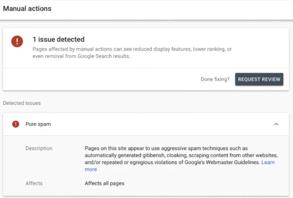 10. Przejrzyj raport „Ręczne działania” w Google Search Console