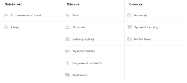 - Konwersje i sprzedaż z katalogu - wybór tego celu sprawia, że docierasz do osób, które są najbardziej skłonne do zakupu Twojego produktu.