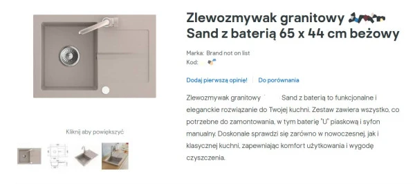 Widok strony produktowej ze zdjęciami i opisem