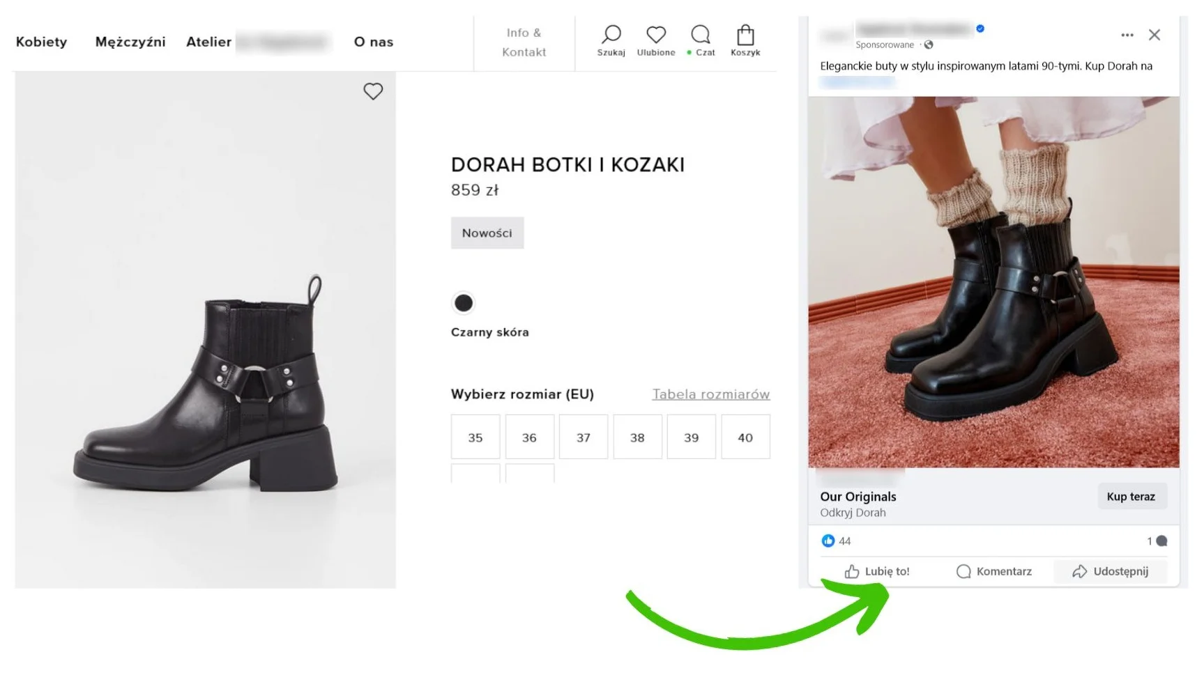 - produktów, które wybrali podczas poprzednich zakupów za pomocą retargetingu na Facebooku,
