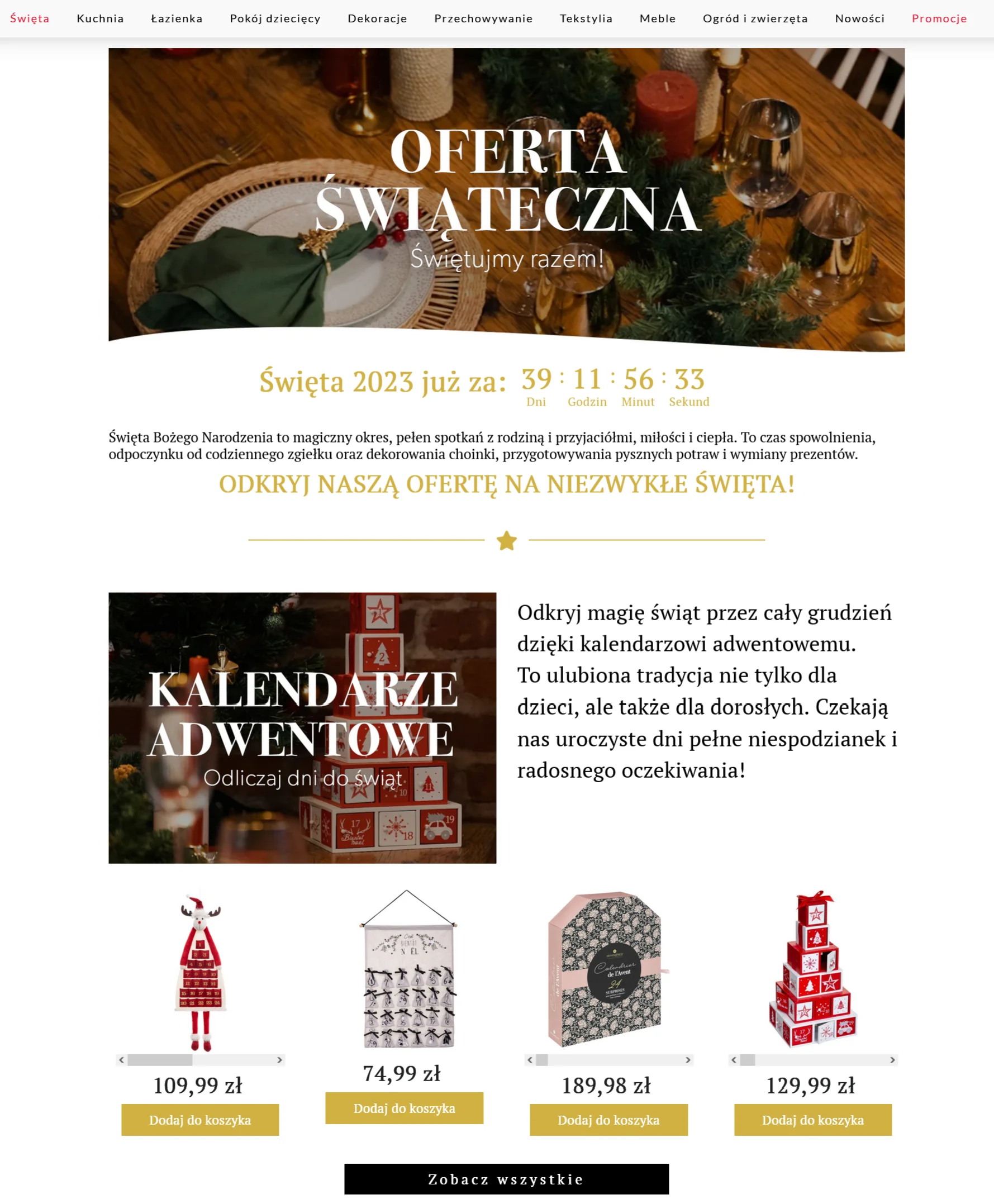 Odrębna strona docelowa stworzona na potrzeby kampanii świątecznej.