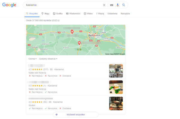 Wyniki lokalne z Google przedstawiane na podstawie lokalizacji użytkownika