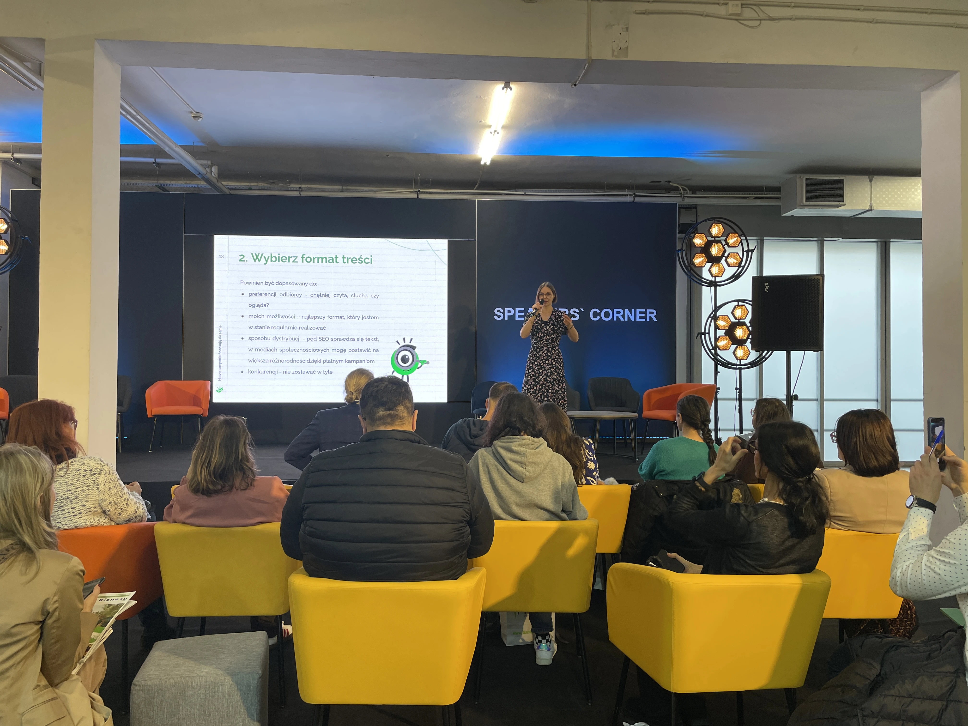 Podczas tegorocznych targów mieliśmy wyjątkową przyjemność współtworzyć (razem z 1000i) strefę wiedzy „Speakers Corner”, w której dzieliliśmy się praktycznymi wskazówkami z zakresu marketingu internetowego.