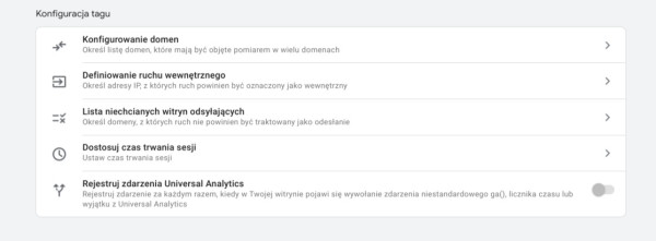 W usłudze usługi Google Analytics 4 wejdź do panelu administracyjnego i kliknij w strumienie danych. Następnie przejdź do sekcji “Więcej ustawień tagowania: i wybierz interesującą Cię opcję.