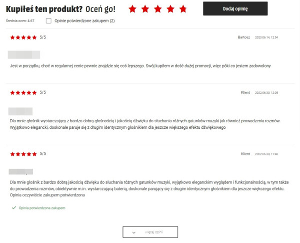 Przykładowe opinie użytkowników.