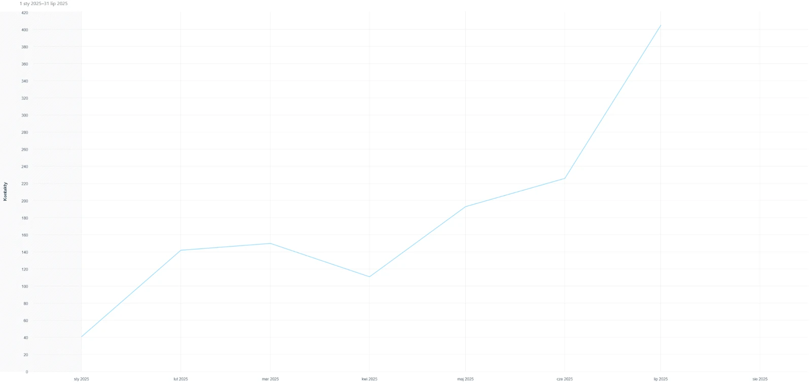 Stopniowo rozbudowywaliśmy kampanie Meta Ads. Szukanie czystych leadów (osób zainteresowanych kursem) było kosztowne. Wtedy klient postanowił spróbować przyciągać klientów innymi sposobami. Wspólnie zaczęliśmy promować bezpłatne webinary, darmowe materiały z kursów oraz quizami typu “Czy kariera w Python jest dla Ciebie?”. Ten sposób pozyskiwania klienta, zdobywania danych kontaktowych, mailingów okazał się najskuteczniejszy i stale przyciąga klientów zainteresowanych kursami.