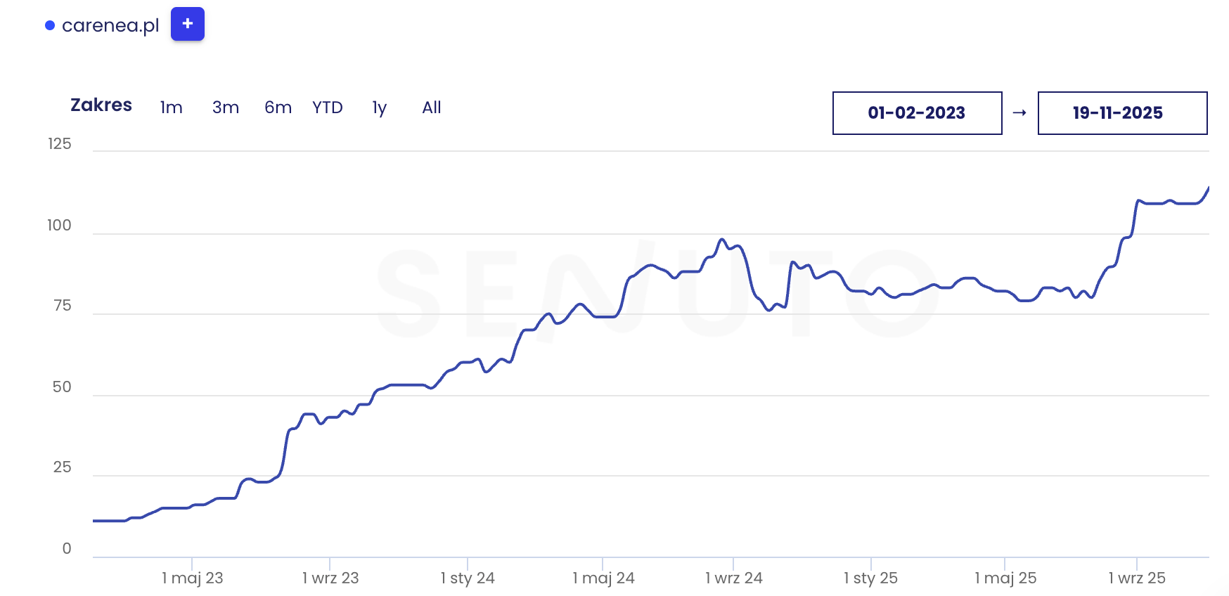 Pozycjonowanie strony rekrutacyjnej Carenea.pl obejmowało: