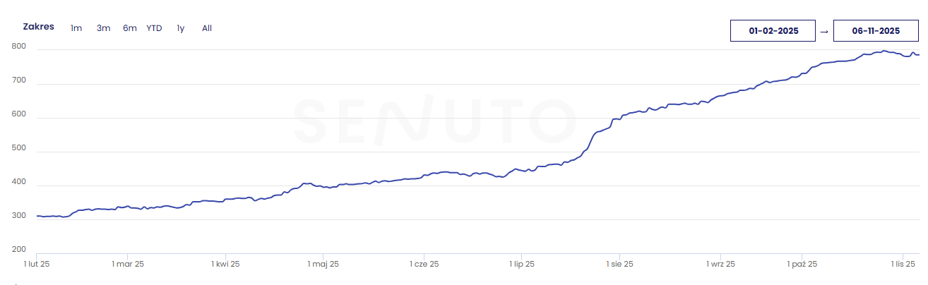 - rekordowa liczba fraz TOP10 utrzymująca się trendowo od lipca 2025.