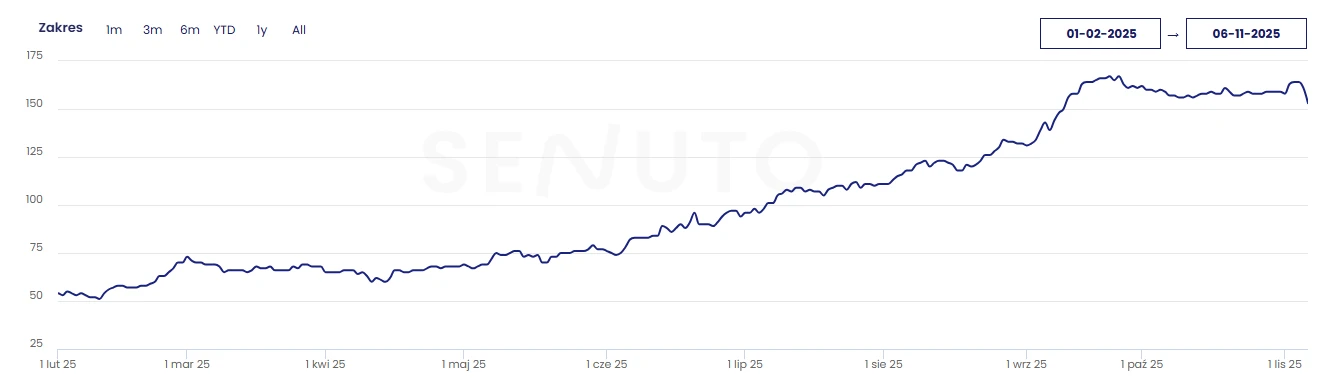 - rekordowa liczba fraz TOP10 utrzymująca się trendowo od lipca 2025.