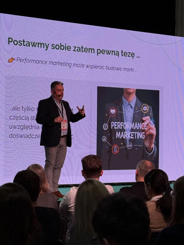 Podczas prelekcji Piotr szczegółowo omówił mechanizmy reklamy performance, które mają wpływ na wizerunek marki, a nie tylko na jej wyniki sprzedażowe. Skupił się na tym, jak regularna obecność reklam, ich personalizacja i spójność komunikacji w kampaniach mogą kształtować pozytywne skojarzenia z marką, budując jej świadomość wśród odbiorców. Zastanawiał się również, jak działania performance marketingowe mogą być istotnym elementem długoterminowej strategii marketingowej e-commerce, zmieniając podejście do budowania relacji z klientami i stawiając na świadomość marki, a nie tylko na jednorazowe konwersje.