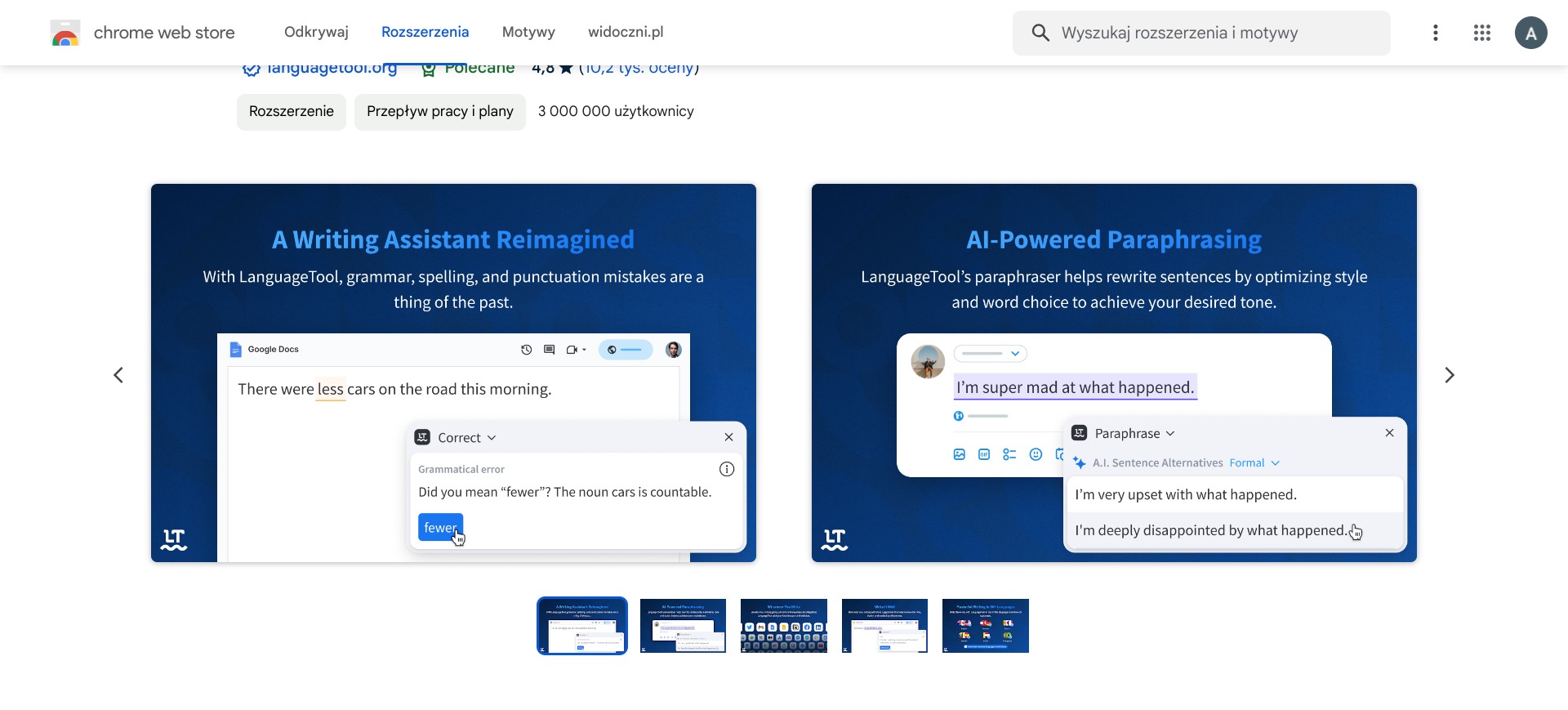 Narzędzie LanguageTool do weryfikacji stylistyki i poprawności gramatycznej oraz ortograficznej treści. Narzędzie to również (w płatnych wersjach) umożliwia parafrazowanie treści oraz oferuje funkcje AI